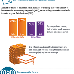 - Millennial small business owners more willing than older small business owners to take on debt to grow their business