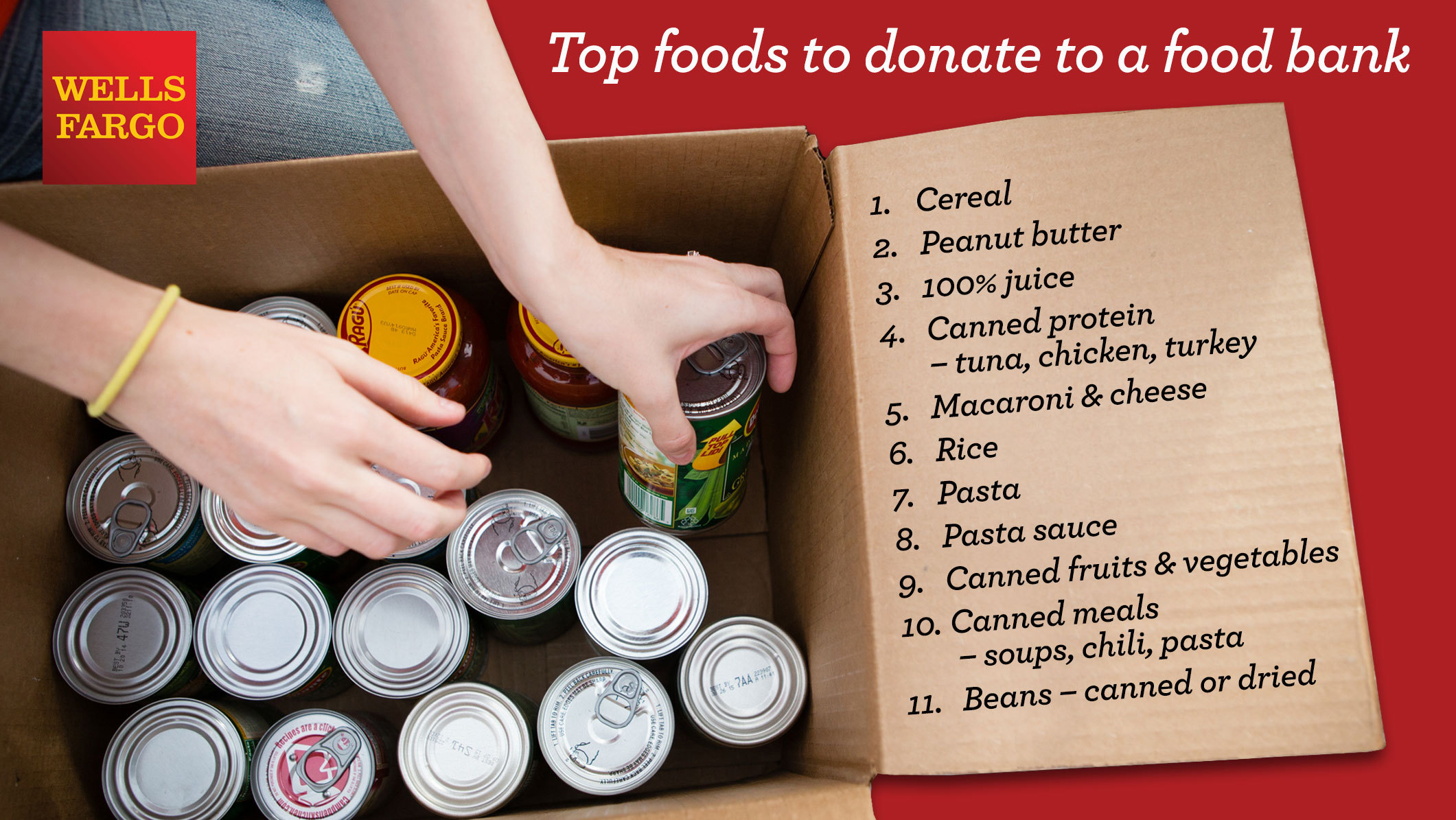 Donating non-perishable goods at one of 5,700 Wells Fargo branch bank