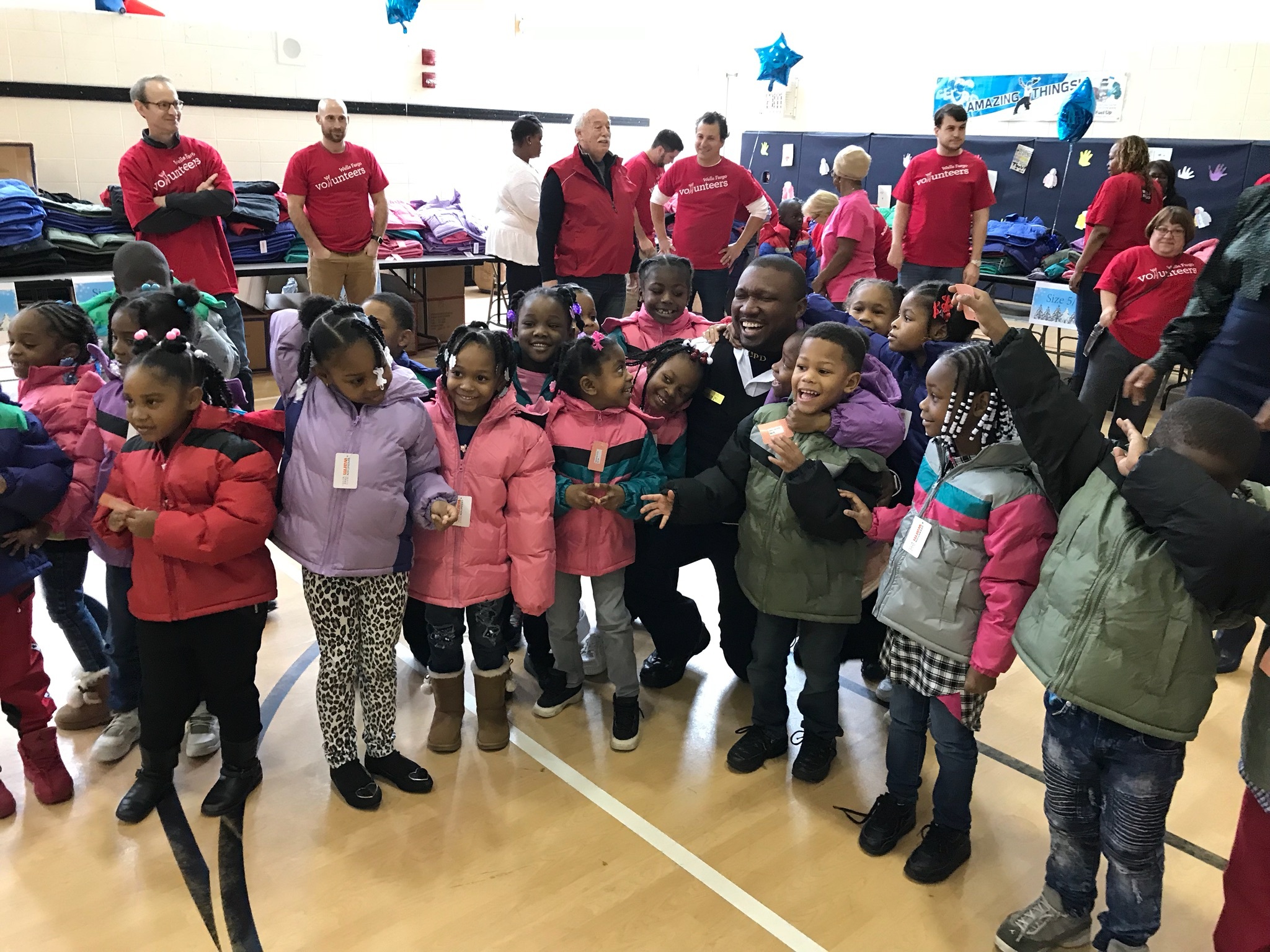 donations raised by Wells Fargo to supply the new outerwear, and then