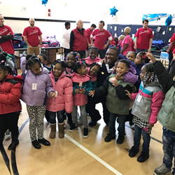 The company contributed 2,500 coats to low-income children at a Chicago