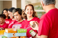 Volunteering time at a local food bank.