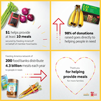 Making a monetary donation to a local Feeding America member food bank through a Wells Fargo ATM, online or by texting MEALS to 91990.