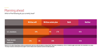 Talking to family members about wills and estate plans is not something most investors enjoy. The slight majority (51%) say they do it out of obligation, while most of the remaining respondents either avoid it (14%), dread it (10%) or don’t ever do it (14%). Just more than one in 10 surveyed (11%) say they enjoy it. At the same time, the idea of including a “letter of wishes” in their will detailing matters from funeral arrangements to how they want heirs to use their money or other assets, appeals to 56% of investors — possibly because it sidesteps direct conversations. Higher-income investors are not markedly different in most respects from all investors in their estate preparation or preferences. However, those high-income investors surveyed are much more likely to want to leave a letter of wishes (70% vs. 56%).