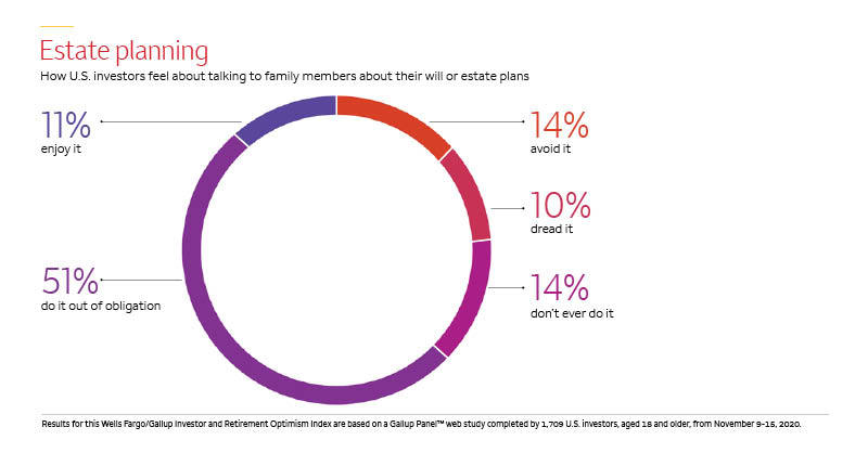 A graphic showing how U.S. investors feel about talking to family members about their will or estate plan. (Graphic: Wells Fargo)