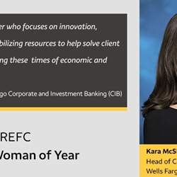 “I’m humbled to be nominated by my peers for this incredible honor,” said McShane. “Thank you to CREFC for shining a light on the contributions and advancement of all women in our industry. I want to acknowledge my exceptional peers and colleagues, especially those in the CREFC Women’s Network, and those with whom I work every day at Wells Fargo. In this challenging year, our collective dedication and tenacity is what will help move us forward together.”