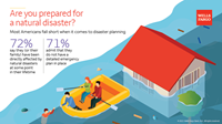 In addition to lacking a physical plan, most Americans also are not financially prepared for disaster. The study found that less than half (44%) have started an emergency savings account, and many do not keep enough cash on hand. Two in five (39%) say they have no emergency cash in the house, and another 11% have $100 or less in cash at home.