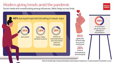 Modern giving trends amid the pandemic infographic. (Graphic: Wells Fargo)