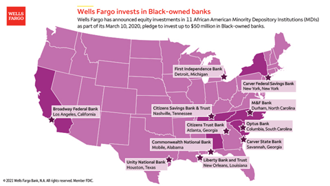 Wells Fargo has invested in 11 Minority Depository Institutions in 2021 as part of a $50 million pledge and a commitment to foster economic growth in Black and African American communities