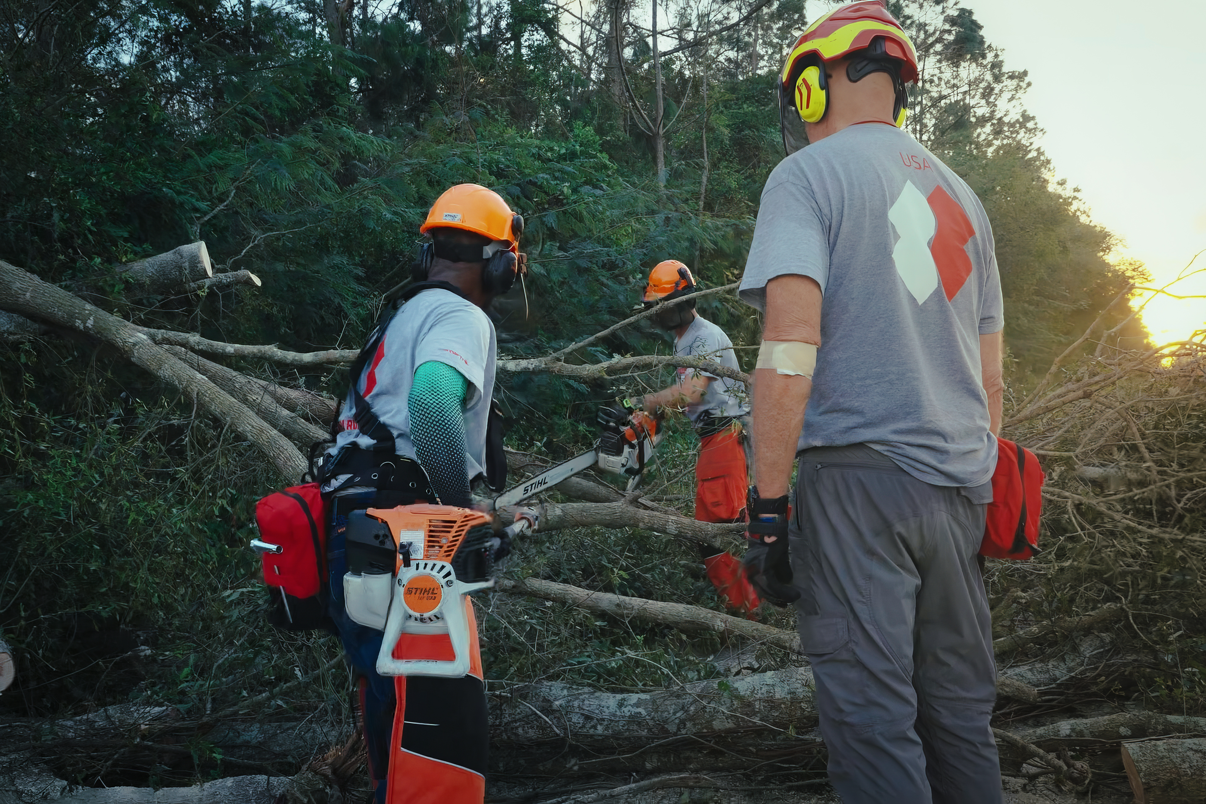 New grant from Wells Fargo will help veteran-led Team Rubicon continue to clear debris and help communities recover from natural disasters, including active efforts underway in Western North Carolina and Florida. (Photo: Wells Fargo)